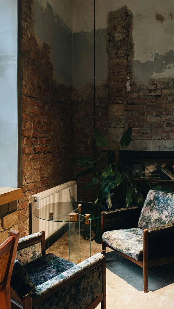 This room is a masterclass in urban chic. The exposed brick walls tell a story of history and character, creating a backdrop that feels raw and authentic. Paired with the elegant glass side table and the vintage-style upholstered chairs, the contrast is absolutely stunning. It’s a perfect blend of old and new, where the roughness of the brick is softened by the plush, floral fabric of the chairs. The radiator, often an eyesore, becomes part of the industrial charm. This space shows you how to embrace imperfections and use them to create a unique, soulful home.
